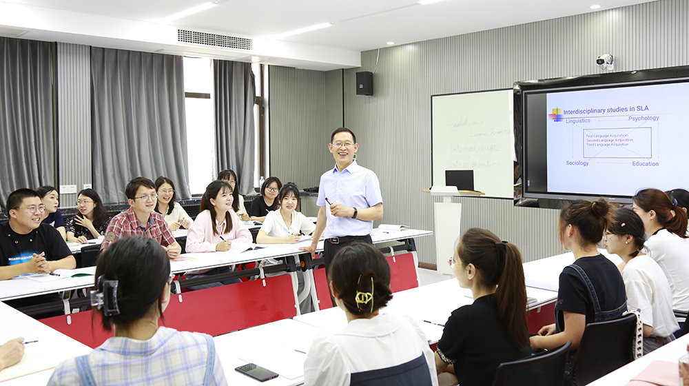 我们聘请了9位国际名师,其中5位是全球排名前2%的语言学家,与本院教师合作招收博士研究生,形成学术团队,紧贴国际学术前沿。在学科建设上,我们主动对接国家战略和社会需求,践行外语学科的思想性、工具性、人文性和科学性,构建并实施了学科与国家战略协同、团队与国际师资协同、课题与优质课程协同、成果与社会需求协同、过程与培养结果协同的“五协同”高水平创新型外语学科人才培养模式,全面提升人才培养质量。