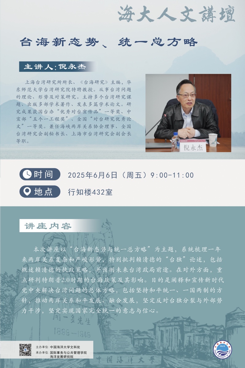 海大人文讲坛2025年第44讲-倪永杰:台海新态势、统一总方略