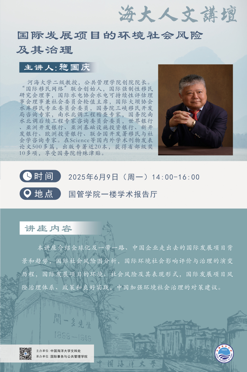 海大人文讲坛2025年第48讲-施国庆:国际发展项目的环境社会风险及其治理