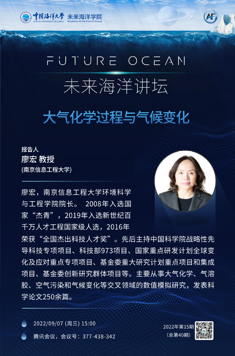 未来海洋讲坛第40讲(2022年第15期)-廖宏:大气化学过程与气候变化
