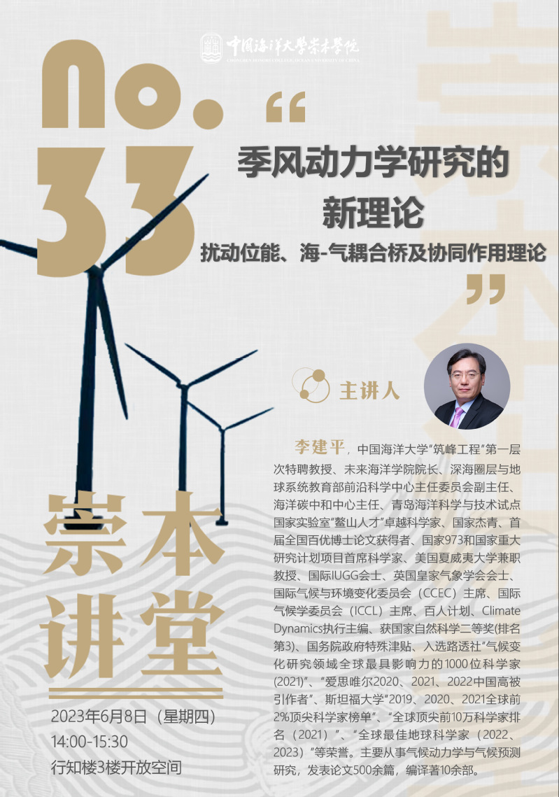 崇本讲堂第三十三讲-李建平:季风动力学研究的新理论——扰动位能、海-气耦合桥及协同作用理论