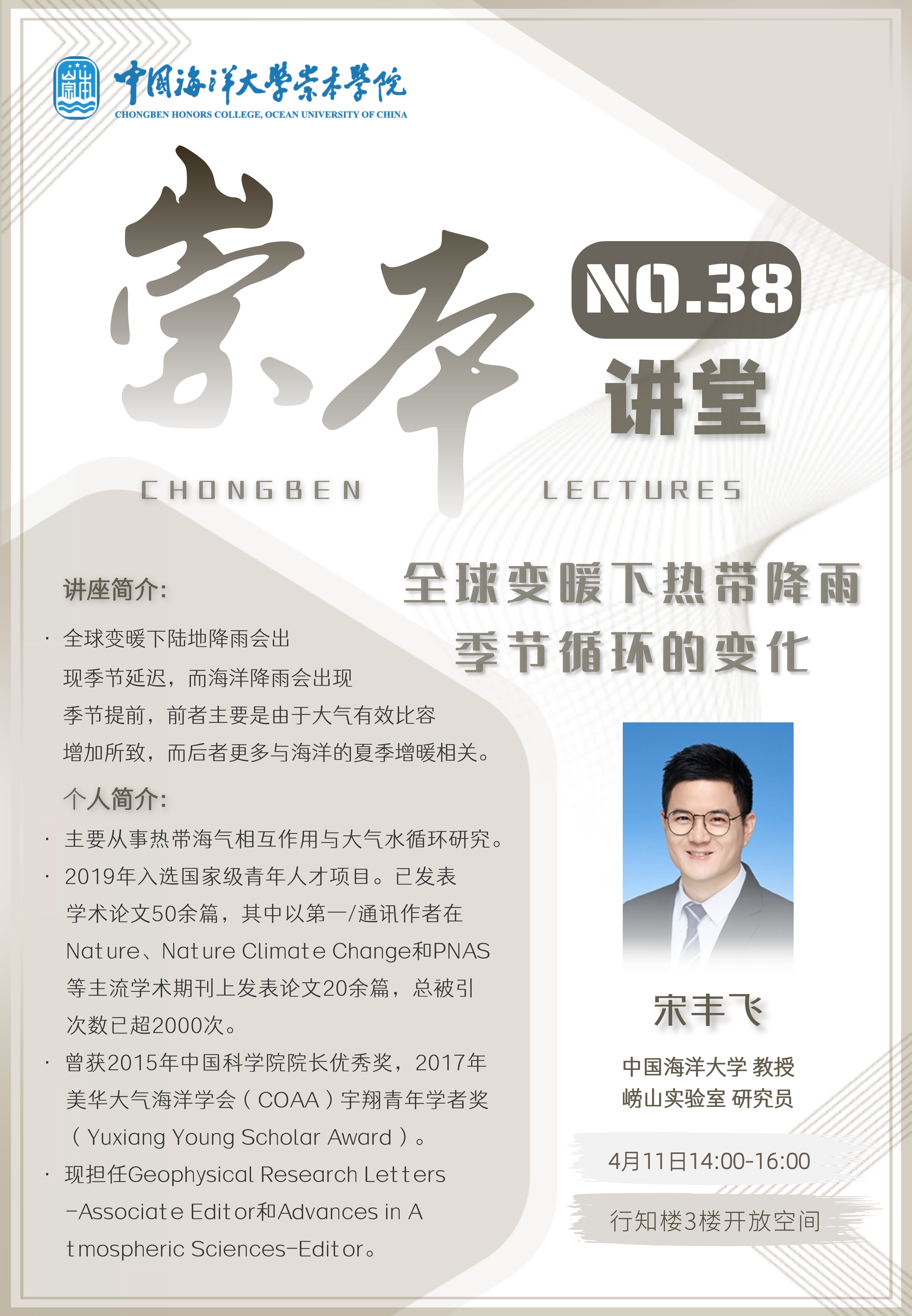 崇本讲堂第三十八讲-宋丰飞:全球变暖下热带降雨季节循环的变化