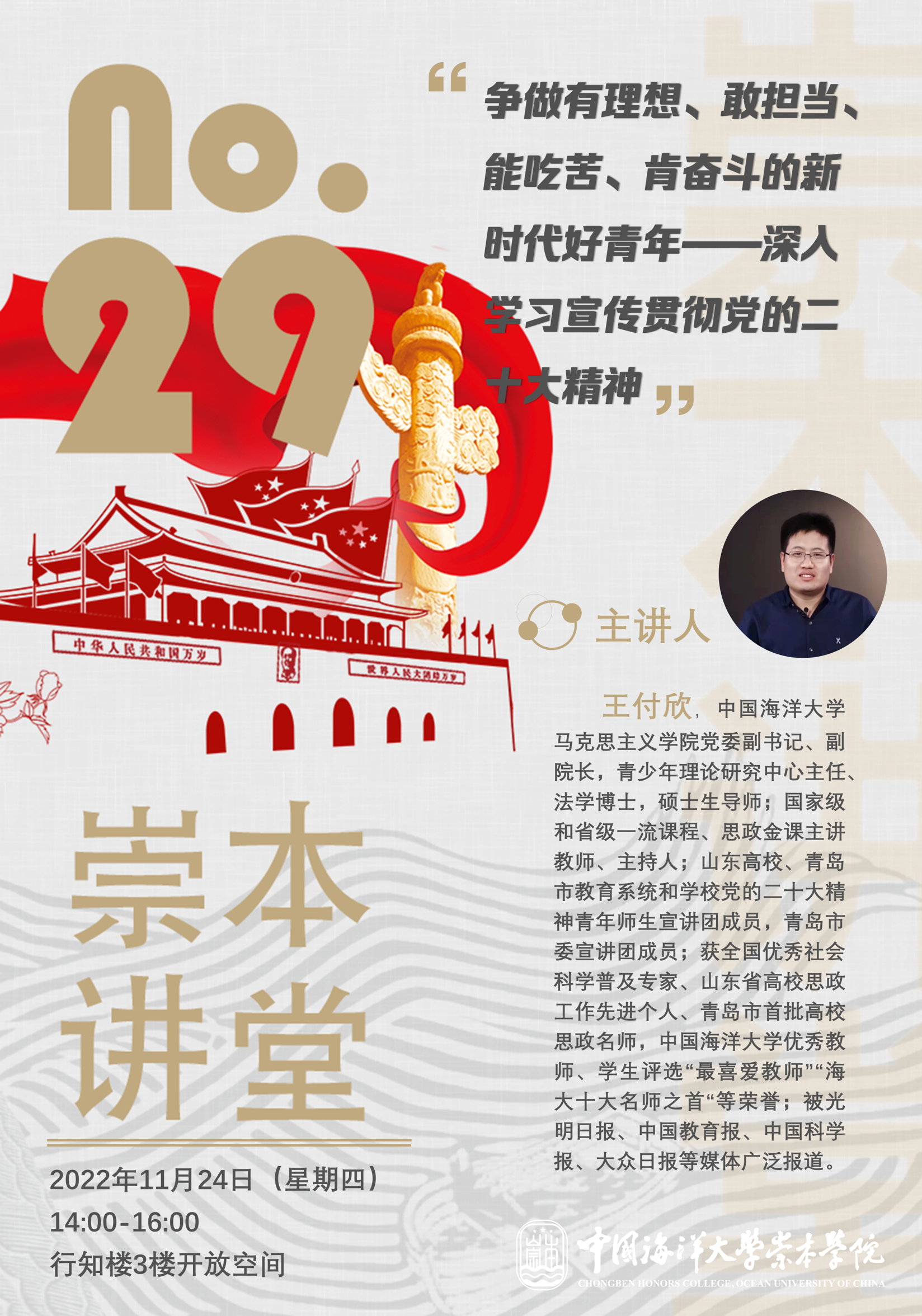 崇本讲堂第二十九讲-王付欣:争做有理想、敢担当、能吃苦、肯奋斗的新时代好青年——深入学习宣传贯彻党的二十大精神