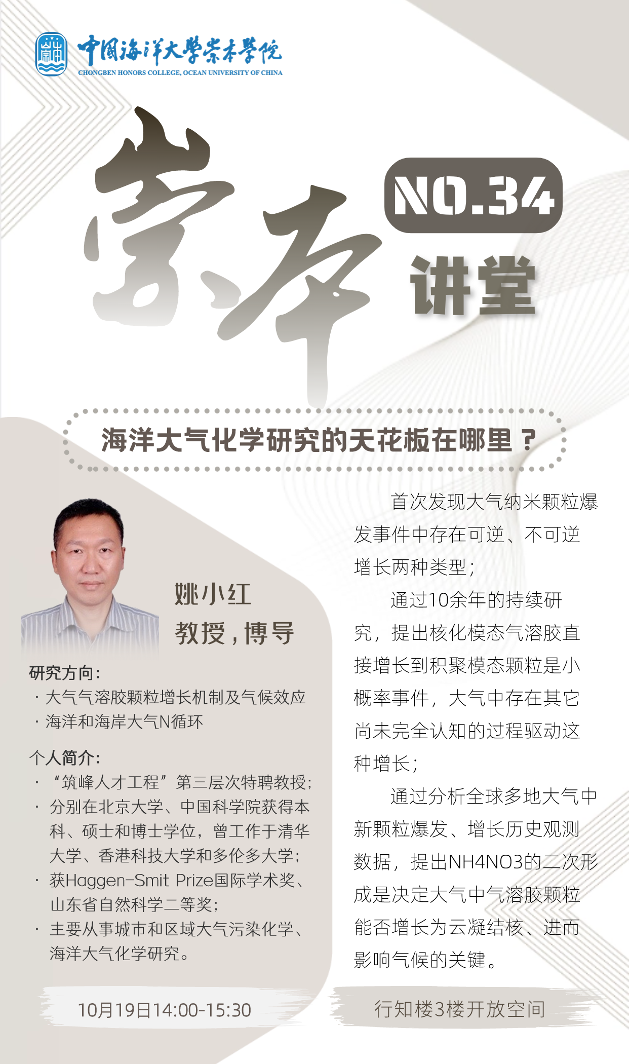 崇本讲堂第三十四讲-姚小红:海洋大气化学研究的天花板在哪里?