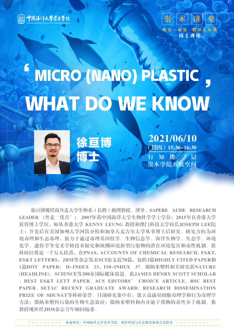 崇本讲堂第十七讲-徐亘博:MICRO(NANO) PLASTIC,WHAT DO WE KNOW