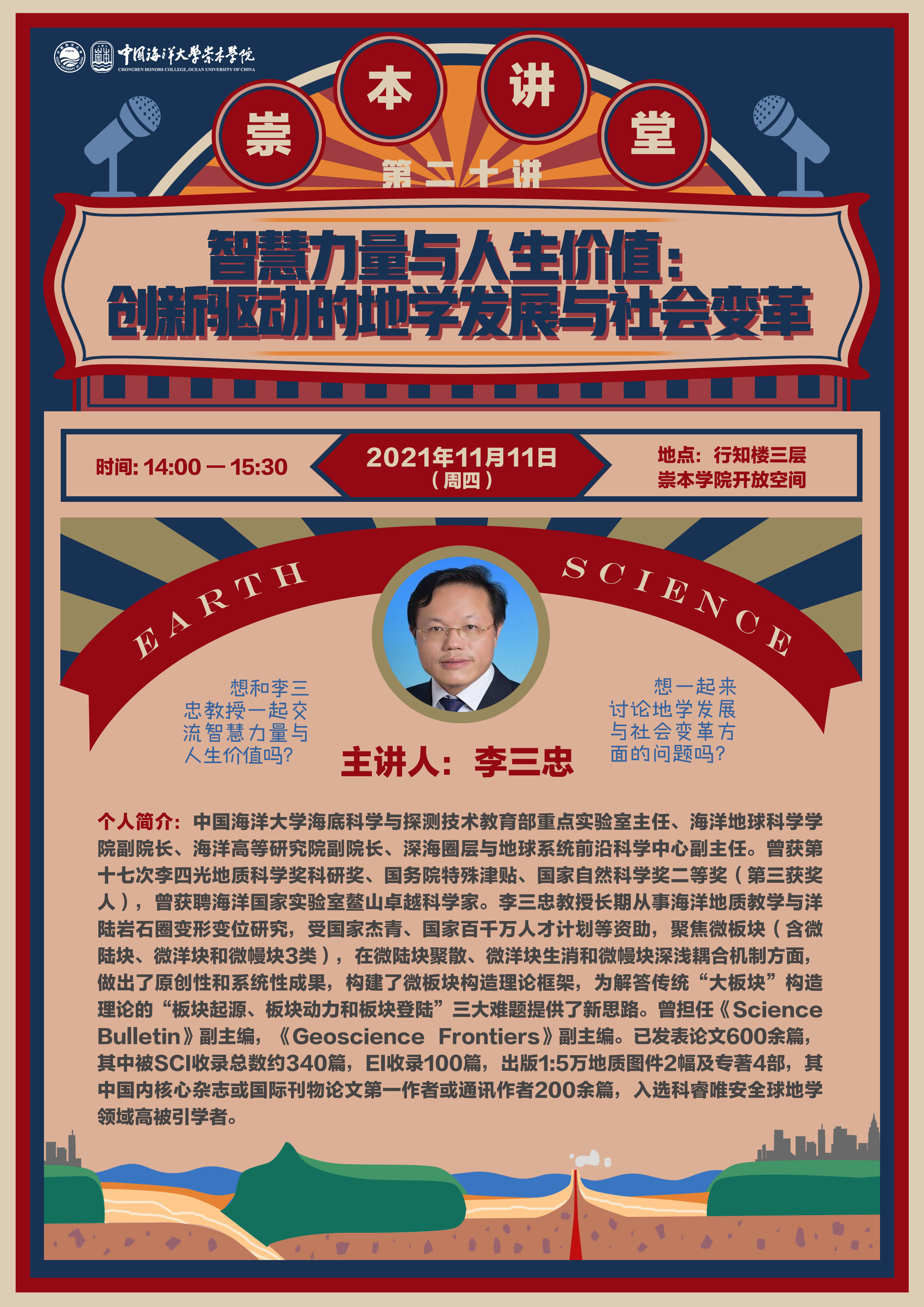 崇本讲堂第二十讲-李三忠:智慧力量与人生价值:创新驱动的地学发展与社会变革