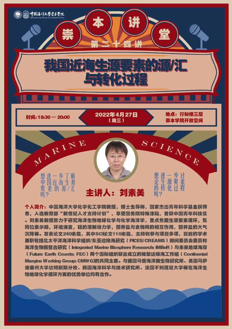 崇本讲堂第二十四讲-刘素美:我国近海生源要素的源/汇与转化过程