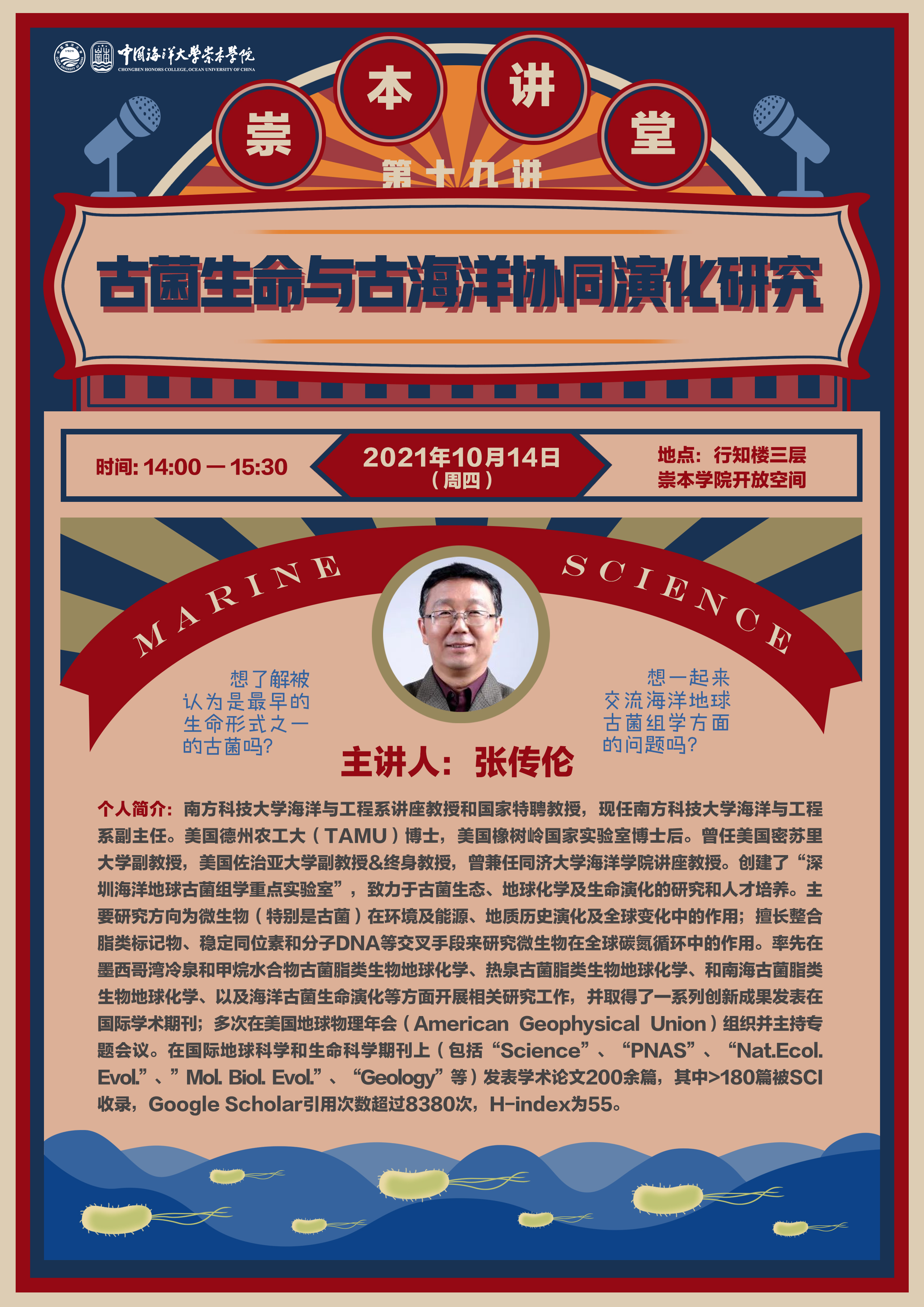 崇本讲堂第十九讲-张传伦:古菌生命与古海洋协同演化研究
