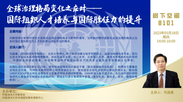通识大讲堂第十六讲-何昌垂:全球治理格局变化之应对——国际组织人才培养与国际胜任力的提升