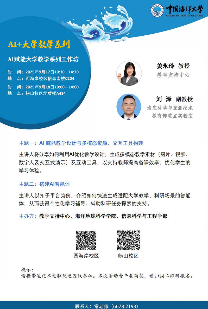 教师发展讲坛2025年第13-14讲-姜永玲 刘泽:AI赋能大学教学系列工作坊