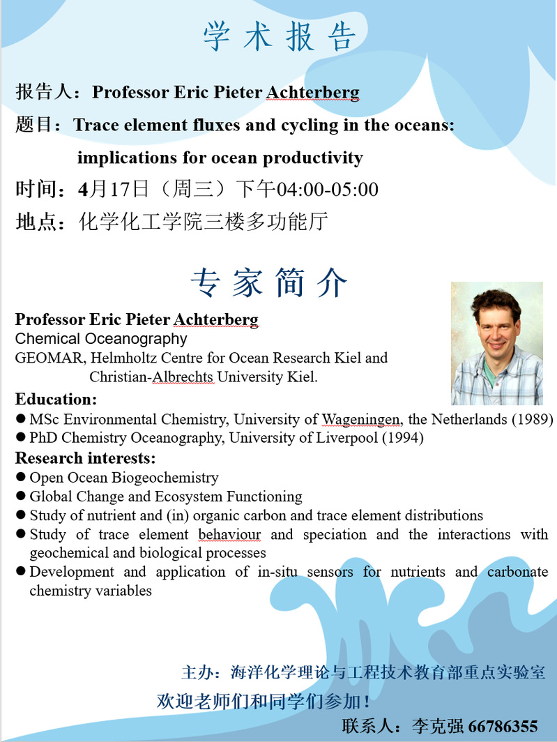 4月17日基尔赫姆霍兹海洋研究中心Eric Achterberg教授报告