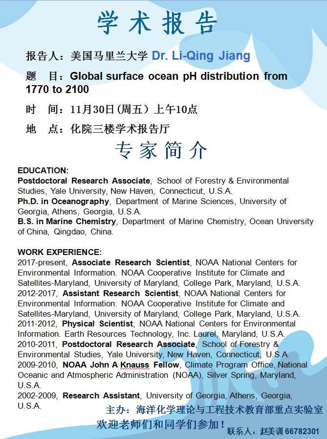 11月30日美国马里兰大学Li-Qing Jiang博士报告