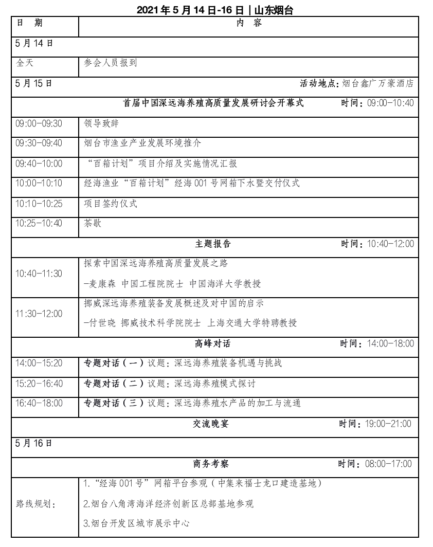5月14日-16日“首届中国深远海养殖高质量发展研讨会暨首期深远海养殖探索与实践高级研修班”将在烟台鑫广万豪酒店举办。