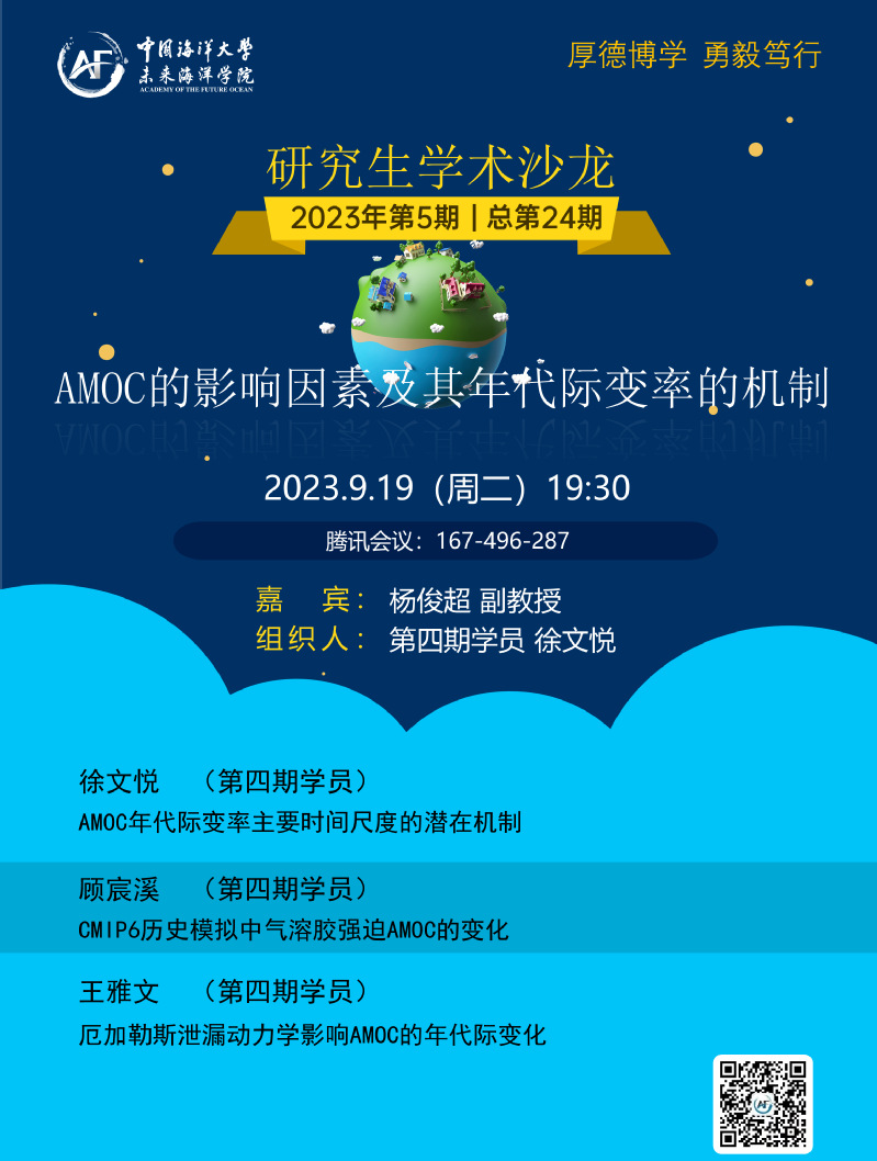 2023年第五期学术沙龙:AMOC的影响因素及其年代际变率的机制