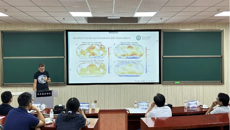 On July 7, at the invitation of Prof. Li Jianping, Dean of the Academy of Future Ocean, Prof. Matthew Collins from the University of Exeter delivered an academic lecture titled “Tropical Pacific Sea Surface Temperature Patterns and the El Niño Southern Oscillation under Climate Change” at Future Ocean Forum. The lecture was hosted by Dean Li, and was attended by over 15,000 participants, including students from the AFO.