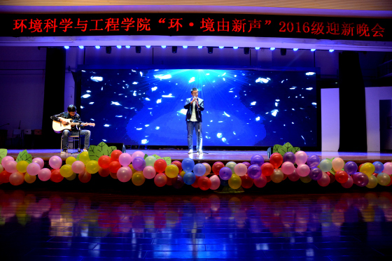 本站讯 10月15日晚,由环境科学与工程学院党委、团委主办,环境科学与工程学院学生会、研究生会承办的环境科学与工程学院“环·境由新声”2016级迎新晚会在大学生活动中心多功能厅顺利举行。出席晚会的嘉宾有环科院党委副书记、副院长刘慧、环科院团委书记祁华、环科院团委副书记西国庚、学生就业创业指导与服务中心师振华、2016级环境工程班主任刘涛老师、各院系团委老师以及各院学生会、研究生会主席。