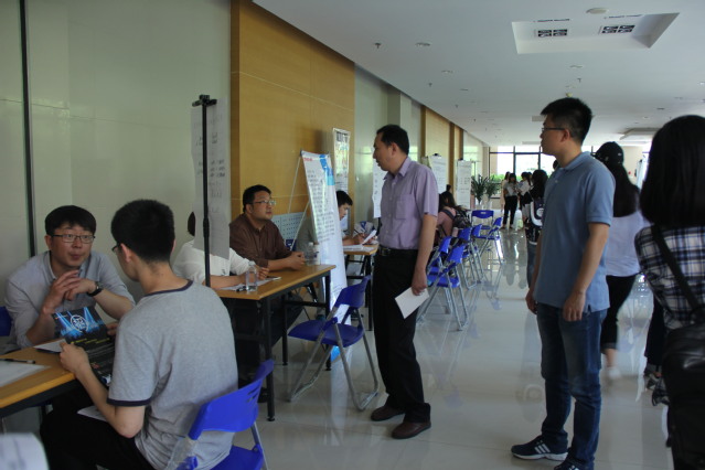 下午一点半,企业招聘代表在志愿者的指引下陆续到场签到,领取材料并张贴企业相关海报信息。两点,招聘会正式开始,实习生积极与用人单位交流,咨询岗位的相关情况,企业对应聘的实习生进行简单面试和初步考核,了解实习生外语能力、软件的掌握、课程成绩等相关情况。