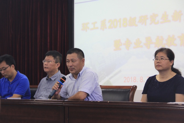 本次新生见面会暨专业导航教育分为环境科学系和环境工程系两部分举行。会议伊始,院长江文胜首先向18级研究生新生表示热烈欢迎。在昨天的开学典礼上,院长江文胜已经作为导师代表向同学们做出殷切嘱托,但在见面会上他对我院研究生新生提出了更高的要求,希望同学们能够在今后的科研生活中学会独立思考,自我学习,养成良好习惯,并祝愿同学们在学业上取得优异成果。之后,院党委书记张庆德发表讲话,他提到了研究生期间的一项重要问题——师生沟通,告诫同学们要与导师密切交流,遇到问题及时与导师商讨解决,从而建立良好的师生关系。
