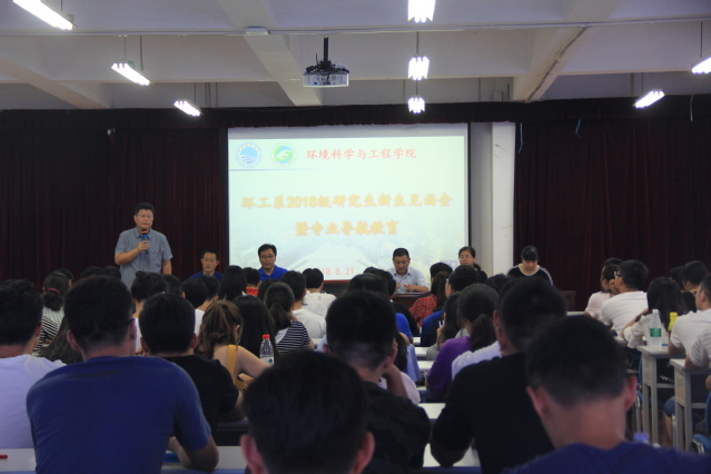 本站讯 8月21日上午,环境科学与工程学院2018级研究生新生见面会暨专业导航教育在学院A517举行,我院党委书记张庆德,院长江文胜,副院长李锋民,党委副书记兼副院长刘慧,环境科学系主任郎印海,环境工程系主任陈友媛、郑建国,团委书记祁华出席会议,2018级全体研究生新生到场聆听。会议由研究生专职辅导员李三鹏主持。