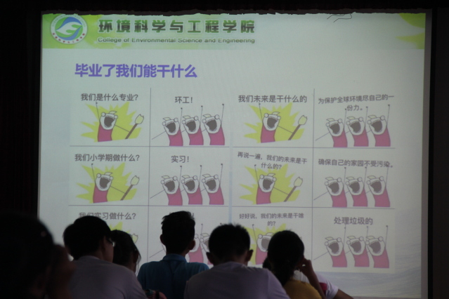 首先刘慧进行大学生活指导教育宣讲。老师的讲述深入浅出,从海大的历史变革缓缓道来,介绍了学校的由来,基础建设的水平,科学研究的成就,杰出科研人才和校友等内容。随后她重点介绍了环境科学与工程学院的概况,以“崇尚学术,谋海济国”的价值追求为办学定位,培养具有鲜明海洋环境特色的环境科学专业,和有地质和海洋特色的环境工程专业。这为新生们提供了对未来方向的思考,使他们更加了解自己未来四年将要学的专业。对于一些有意向转专业的同学,老师也举例说明详细介绍了海大的专业制度,为有自己想法的同学答疑解惑。她提到,虽然大学生活相对于高中会轻松一些,但并不意味着可以太过于放松自己。刘慧也着重强调对于学业警示和退学的严重性,希望同学不要触碰这条红线。