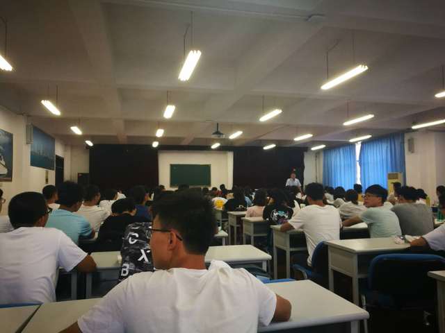 随后,在王宁宁老师的指导下,2018级新生展开了军训负责人竞选活动。活动中同学们热情高涨,纷纷上台陈述竞选经验与优势,共有25人参与竞选。现场气氛活跃,时不时爆发出阵阵掌声与笑声。