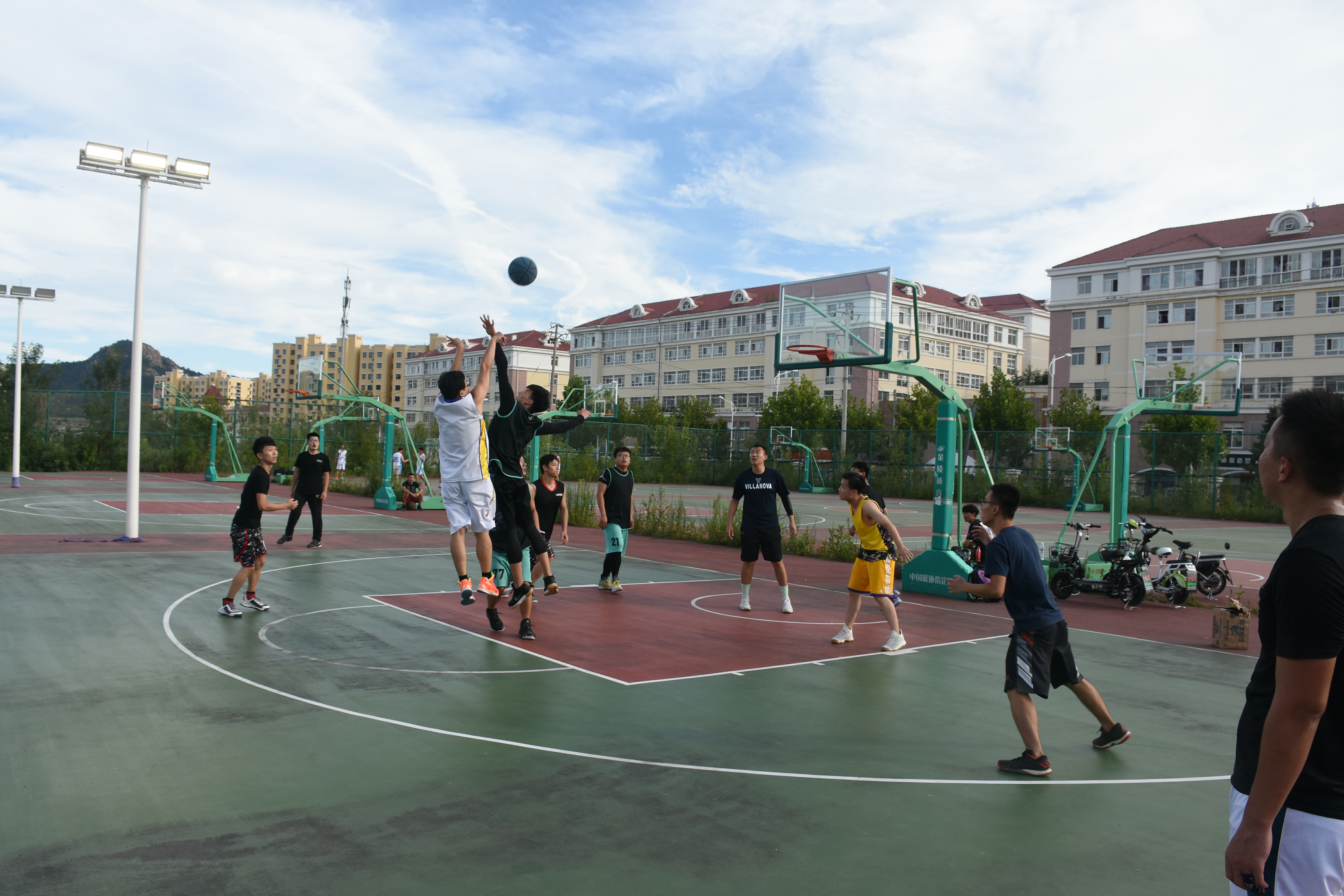 本站讯 9月13日下午,由环境科学与工程学院党委举办的研究生迎新杯篮球赛半决赛在南区篮球场激烈进行。此次比赛分为两组:2018环工专硕队vs 2017环工学硕队、2016环工队vs2016环科队。赛前双方球员进行热身训练,积极寻找手感。