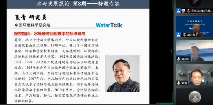 2020年11月7日上午,由中国环境科学学会水处理与回用专业委员会、开云电竞网址环境科学与工程学院、海洋环境与生态教育部重点实验室、清华大学环境学院共同主办的“水与发展纵论(WaterTalk)”第8期以网络会议形式举行。中国环境科学研究院研究员夏青做了题为“水处理与回用技术的标准导向”的报告,全国31个省市区和港澳台地区及海外共1000余名参会人员聆听了夏青研究员的报告。