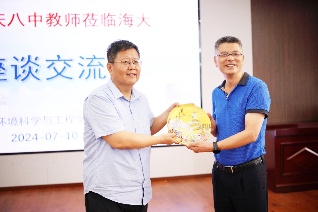 图 4 苏明海校长向江文胜院长赠送纪念品