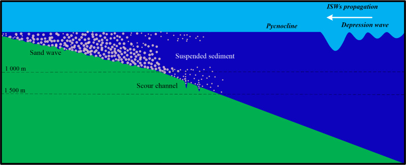 浅化内孤立波在陆坡悬浮沉积物示意图