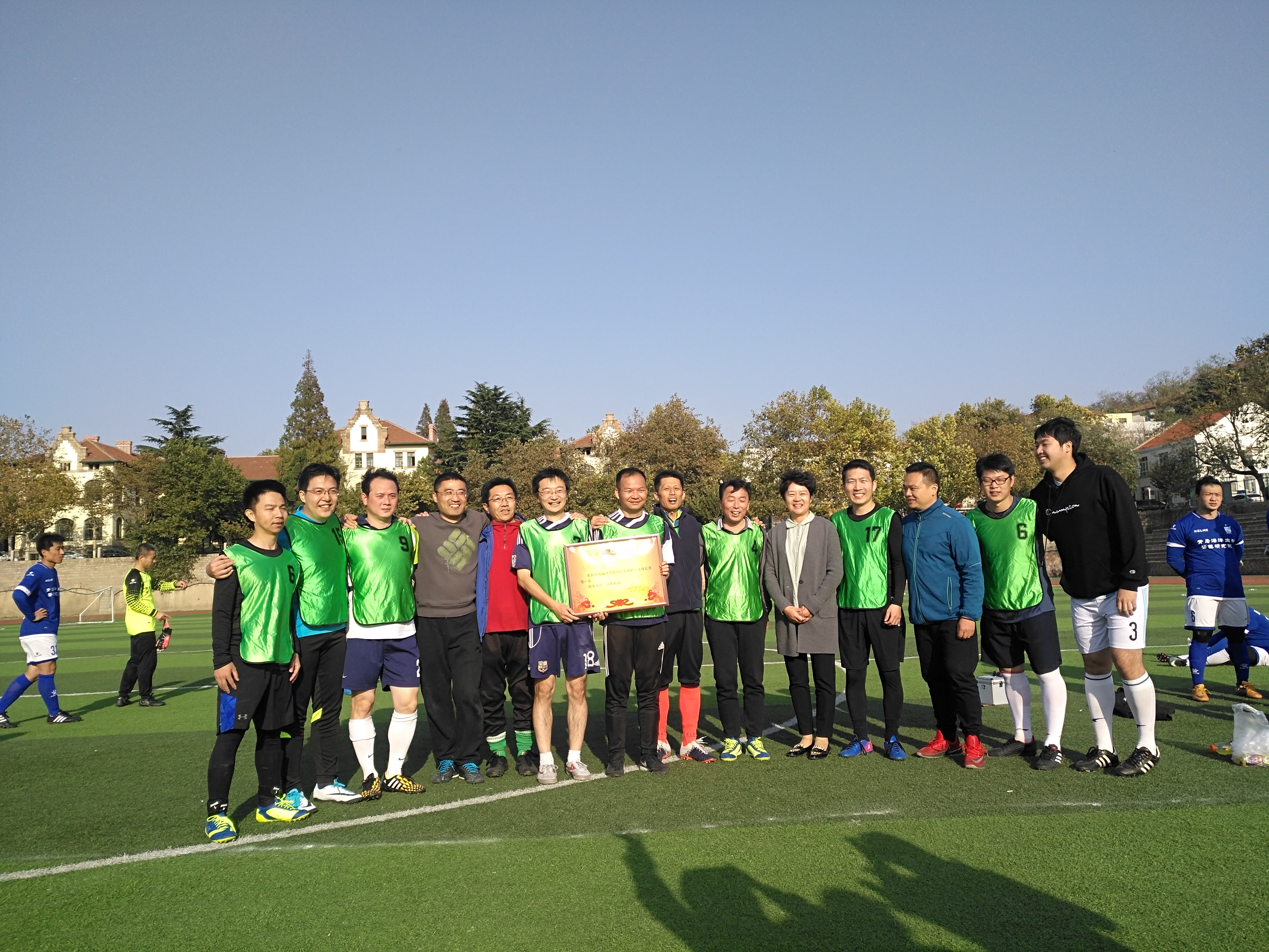 赛前,老师们积极热身,认真练习。比赛过程中,我院不畏强敌,继续发挥出精诚团结、奋勇拼搏的学院精神!比赛期间大家敢打敢拼、配合默契、相互鼓励,展示了高超的球技和顽强的斗志。天气已寒,但球员们的热情十分高涨。场下,拉拉队员同心协力,呐喊助威,振奋团队士气。上半场,我院以2:0暂时领先,进入下半场,比赛精彩纷呈,高潮迭起,在3:0领先的情况下,随后被对手接连攻入两球。最终在大家的奋力拼搏下,我院最终3:2拿下比赛,取得本次比赛的冠军。大家赛出了水平,赛出了风格,赛出了友谊,充分展示了教职工良好精神面貌。我们的比赛精神、拼搏态度甚至是技战术也得到对方老师们的认可和尊重。