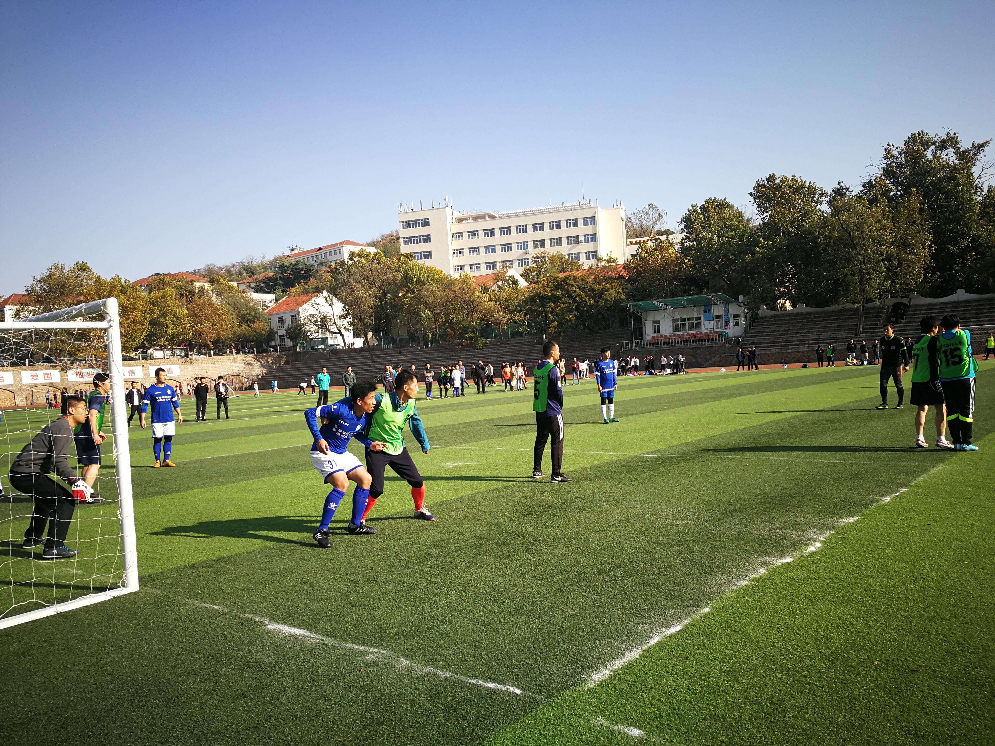 在经历了激烈的小组赛和两场淘汰赛后,食工水产教职工联队挺进2018教职工足球赛决赛。10月26号下午,在鱼山校区体育场,与医药学院的足球冠军争夺赛拉开帷幕。
