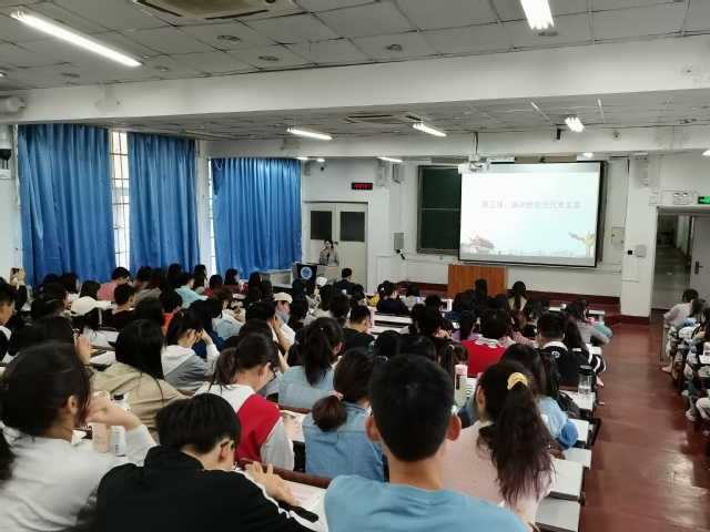 程振明为培训班学员作动员讲话。在讲话中,她介绍了培训班的学习目的和意义,并通过习近平总书记在纪念五四运动100周年大会提出的对新时代中国青年的六点要求,与学员们进行了交流,并对学员们提出了殷切的希望和期望,一是要认真学习,坚定理想信念,二是要努力实践,人人争做楷模,三是要守纪律、守规则。希望每一位学员要有时代责任感、使命感,争取早日加入党组织。随后,张川对培训班学习期间的纪律与要求进行了讲解。