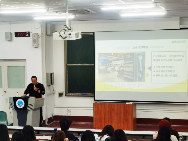 2021年10月23日,学院党委委员赵元晖主讲的《迈向更高质量的经济发展》主题党课在新教楼401室顺利开课,学院2020级产教融合硕士研究生党支部全体党员及入党积极分子参加了此次学习。赵元晖在课上着重介绍了疫情以来中国的发展态势,总体上分为三大部分。一是稳中加固,渐回常态;二是坚定信心,韧性依旧;三是构建新局,赢高质量。安全是发展的前提,发展是安全的保障,作为新时代的共产党员,如何顺应时代发展的浪潮,在稳步迈向高质量的经济发展过程中贡献自己的力量,是一个值得我们思考的问题。