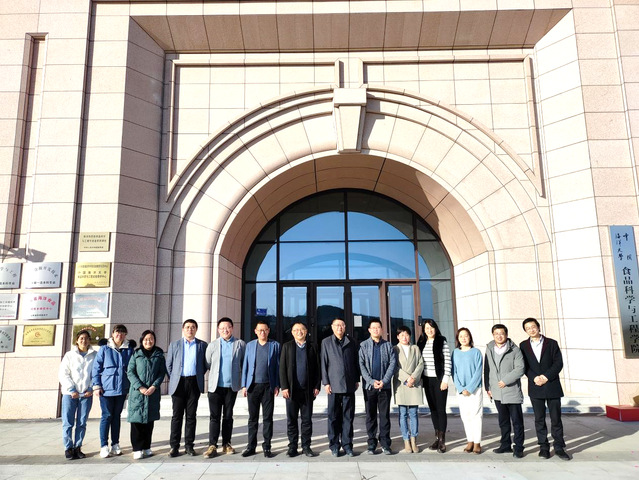 本站讯 2月20日,明月五彩产业文旅集团总裁徐玉强一行来到食品科学与工程学院调研,学院党委书记辛华龙、党委副书记程振明、副院长毛相朝、副院长徐宋娟、副院长李振兴、山东省海洋食品工程技术研究中心副主任王鹏参加座谈。