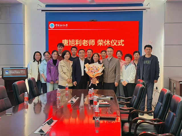仪式最后,全体与会人员合影留念,共同记录下这一温暖时刻。此次荣休仪式不仅是对唐老师工作生涯的高度认可,更是学院尊师重道、薪火相传精神的生动体现。学院希望唐老师能常回“家”看看,继续关心和支持学院与基础化学实验中心的建设发展,同时激励广大在职教师以唐老师为榜样,为学院教育事业的发展不懈努力。