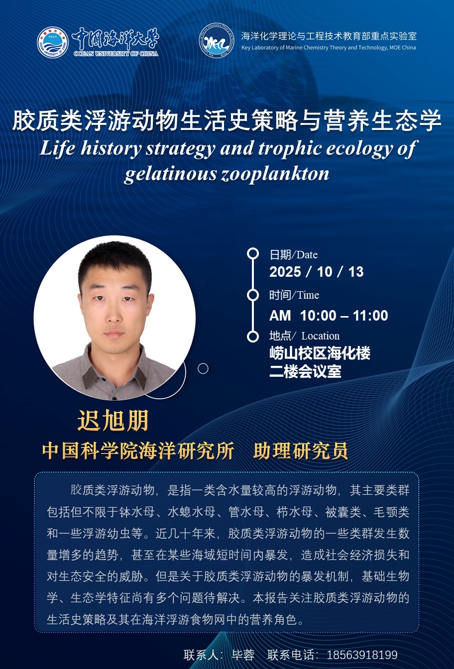 迟旭朋助理研究员报告:胶质类浮游动物生活史策略与营养生态学