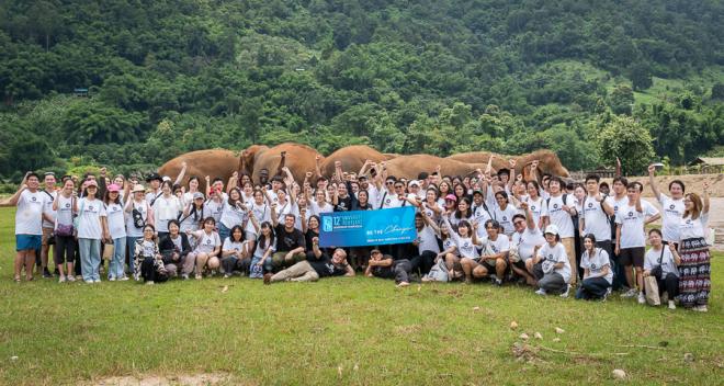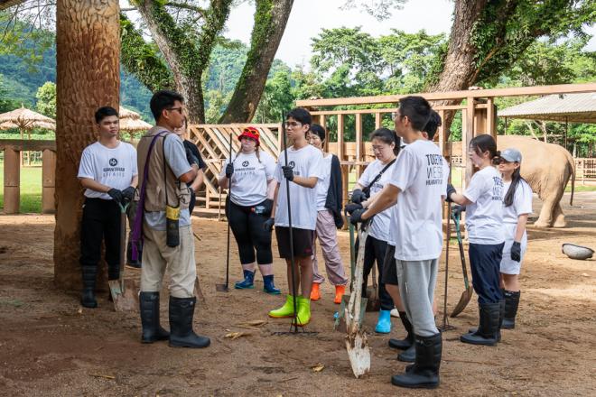 在“回馈日”(The Kindness Day),参会者们用一天的时间,通过参与泰国多个地区的志愿活动,将爱心与知识付诸实践,进一步增强社会责任感。8月7日至8日,崇本学子选择前往清迈,深入参观并参与大象自然公园的保护工作。该保护区提倡道德与可持续的实践,参与者在此过程中亲身体会了大象保护工作的必要与艰辛。在这次活动中,崇本学子通过清理大象粪便、完善公园基础设施、制作健康象餐等具体行动,与这些温柔的巨人建立了深厚的情感,并立志积极投身于它们的保护事业中。