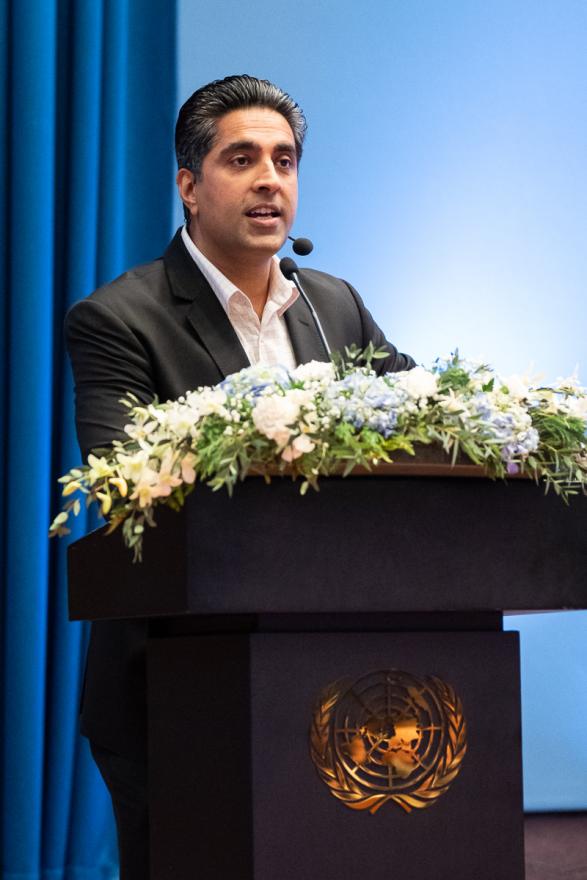 之后,Ifrah基金会负责人Ifrah Ahmed女士进行了题为“反对割礼”的演讲;资深演说家Simerjeet Singh先生则通过“THE DISRUPTION COACH”的全场互动,告诉全场参会人员:“生活中的每一个挑战都是学习和改变的机会”。崇本学子在九场不同领域的会议上仔细聆听、深入思考,与演讲者充分互动,在国际舞台上发出“海大声音”,展现了对全球问题的高度关注与独特见解。
