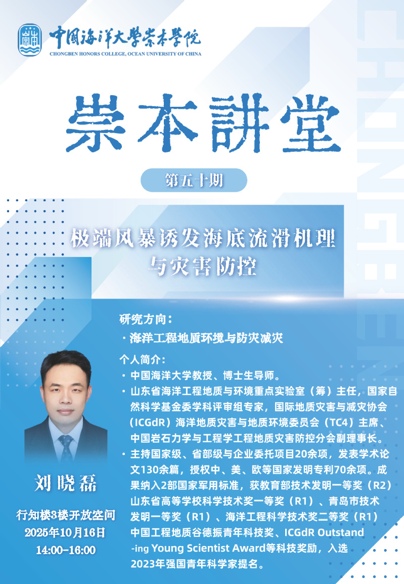 崇本讲堂第五十讲:刘晓磊-极端风暴诱发海底流滑机理与灾害防控
