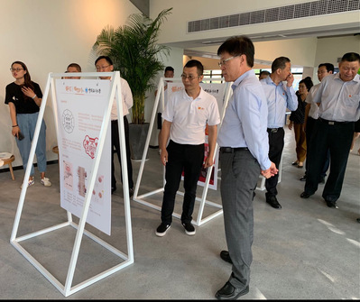 图4 时任崂山区委书记江敦涛参观项目成果展板