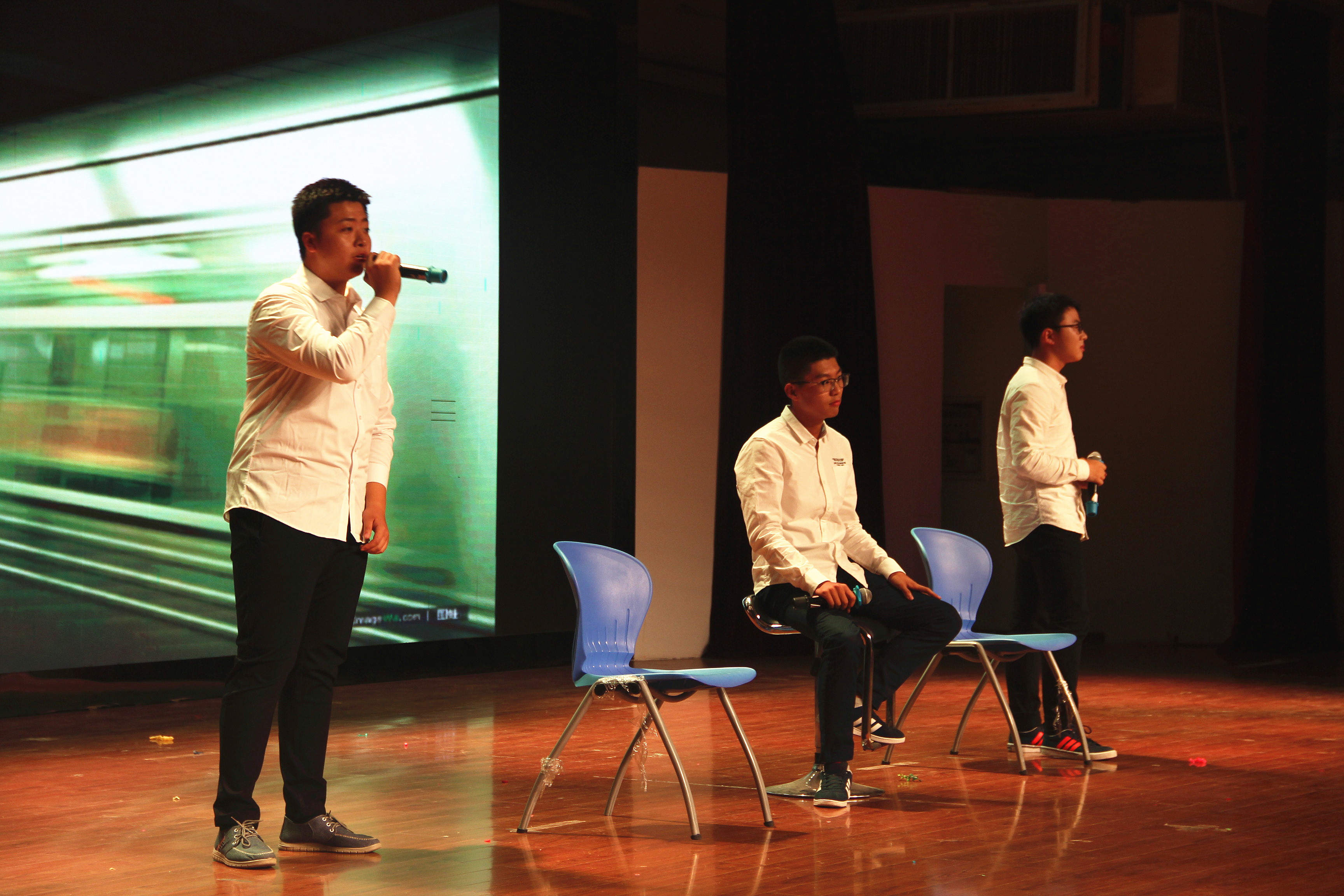 一段视频,一串故事。屏幕里播放着由学生会制作的一段新生报到时的视频,许多观众看到视频中那一张张熟悉的面孔,纷纷拿起手机在舞台旁的微信互动屏幕上发出自己的感慨,有新生看到自己的脸庞出现在大屏幕上的忍俊不禁,有老生感叹时光飞逝又是新的开始,会场气氛开始活跃起来。