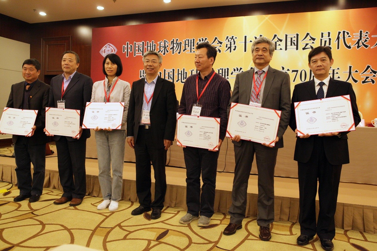 刘怀山教授、童思友教授、邢磊副教授和王林飞副教授参加了大会和颁奖典礼。大会还进行了中国地球物理学会理事会的换届选举,其中刘怀山教授再次当选中国地球物理学会常务理事,童思友教授当选理事。