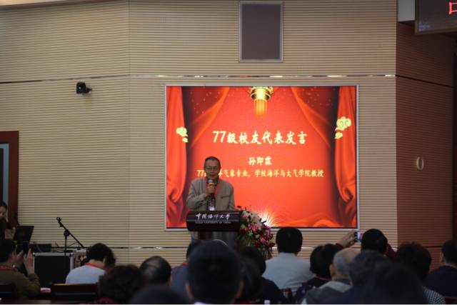 “问君何所感,满目青山悠然。悠然,悠然,海大前景阔远”,77级海洋气象专业、海洋与大气学院教授孙即霖在讲述他与海大的故事的同时,殷切祝愿海大前景广阔。“我在40多年前的秋天,开始了我人生的春天。我填报了14个志愿,全部服从分配。我被第四志愿录取,来到海大”。他因缘分来到海大,在这里度过了他难忘的大学生涯,在这里扎根生长。
