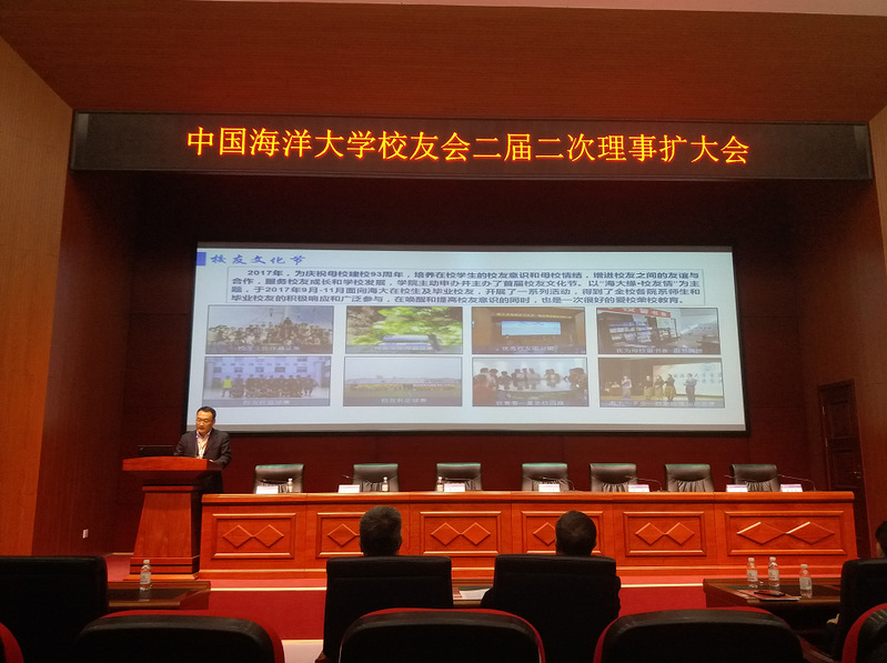 会议对来自6个地方分会、1个行业分会和3个学院分会的10个分会集体进行了表彰,获奖分会向大会报告和展示了近年来的工作开展思路和取得的成效,海洋地球科学学院党委副书记张殿镇代表学院向大会就学院校友工作开展情况,特别是举办海大校友文化节的相关情况进行了汇报和交流。