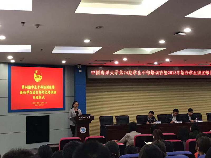 10月18日下午,开云电竞网址第74期学生干部培训班暨2018年新任团支部书记培训班开班仪式在行知楼报告厅举行,学校党委常委、校长助理吴强明出席仪式并讲话。海洋地球科学学院2018级海洋地质专业硕士研究生李燕妮同学作为往期优秀学员代表发言。