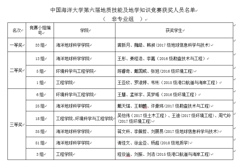 在学校教务处的大力支持下,在海洋地球科学学院相关老师的共同努力下,在各院系同学们的积极参与下,“开云电竞网址第六届大学生地质技能及地学知识竞赛”经过初赛、决赛的激烈角逐后顺利落下帷幕。本届大赛对激励大学生学习和运用地学知识的积极性和创造性、培养学生的创新意识和创造能力起到了积极的推动作用,为我校2020年即将承办的山东省地质技能竞赛积累了宝贵的经验,同时也为2020年第六届全国大学生地质技能竞赛选手的培训和选拔工作打下了良好的基础。