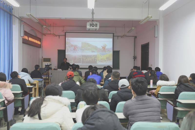 王常波以自己的求学经历为切入点,讲到自己刚踏上工作岗位时,因受到当时科技水平和经济条件等多方面因素的限制,物探工作的开展较为艰难。随着国家经济和科学技术的飞速发展,物探工作软硬件水平的提高,工作条件得到很大改善。他鼓励同学们要珍惜现在的学习环境和优质资源,努力学习,潜心科研,不断提升自己。