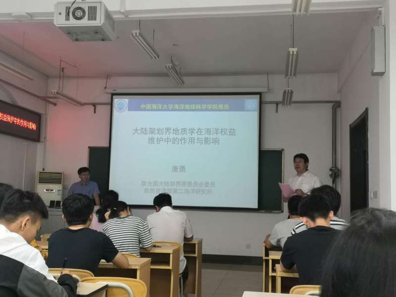 随后,唐勇教授讲述了中国大陆架工作组的在维护国家海洋权益方面做出的努力和斗争,他指出,要通过科学的依据,可靠的法理条例,通过正当途径维护国家权益,在国家利益面前,不能退让退缩,要敢于和善于进行坚决的斗争。