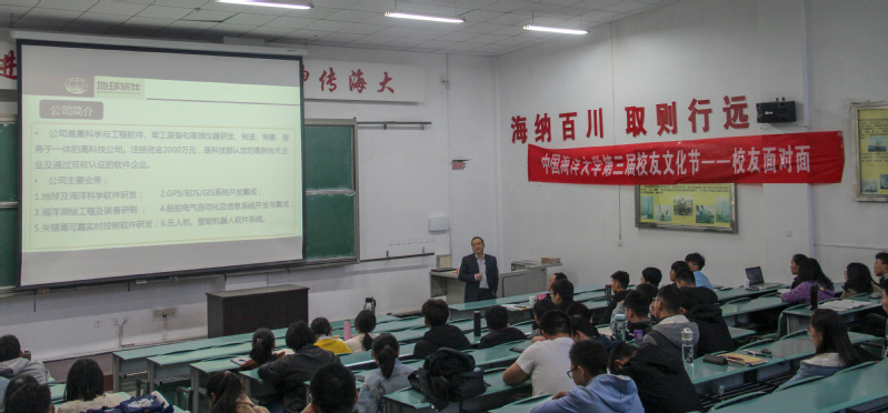 报告会伊始,张俊明首先用一段自己的纪录片视频向大家简单展示了自己的求学、工作和创业发展经历。随后,他结合创业公司的特点和发展情况,重点向介绍了当前广泛使用的侧扫声呐、浅地层剖面、多波束数据处理系统等海底探测软件,他表示,无论何时何地,技术能力都是核心竞争力,同学们在校期间需把握时间与机会,不断提高自身能力,增强自身核心竞争力,力求在未来求职的道路上先人一步。