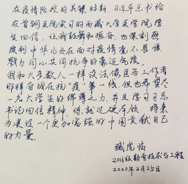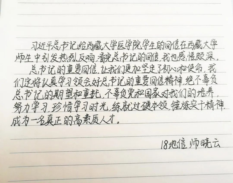 很多同学发表了他们看完总书记回信后的感悟。